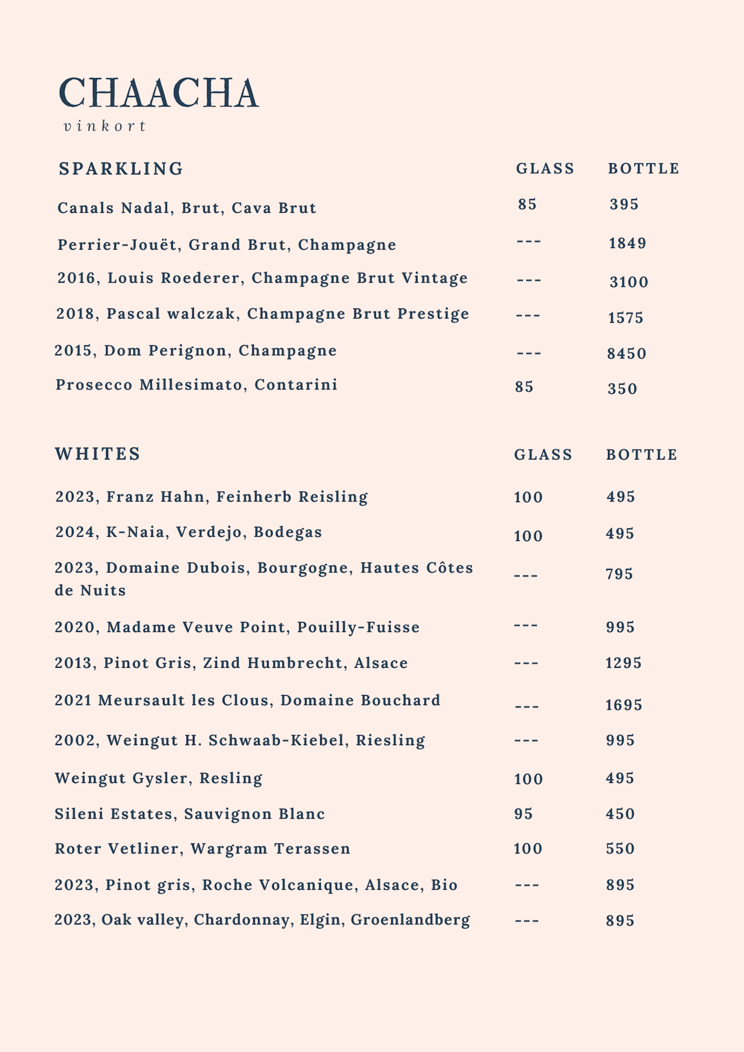 Som restaurant i Aalborg er Chaacha kendt for sin uformelle stemning, høje kvalitet og sociale måde at spise på. Her er der plads til både afslappede hverdage og særlige aftener, hvor maden danner rammen om fællesskab og gode oplevelser.